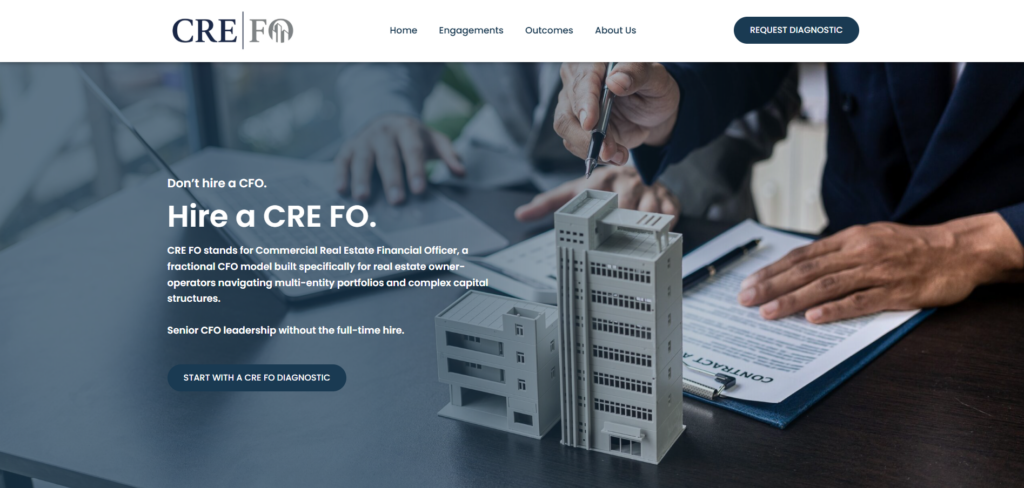 Flyt Creative’s development team announced the launch of a new website for The CRE FO (Commercial Real Estate Financial Officer), a fractional CFO model designed specifically for real estate owner-operators managing multi-entity portfolios and complex capital structures.
